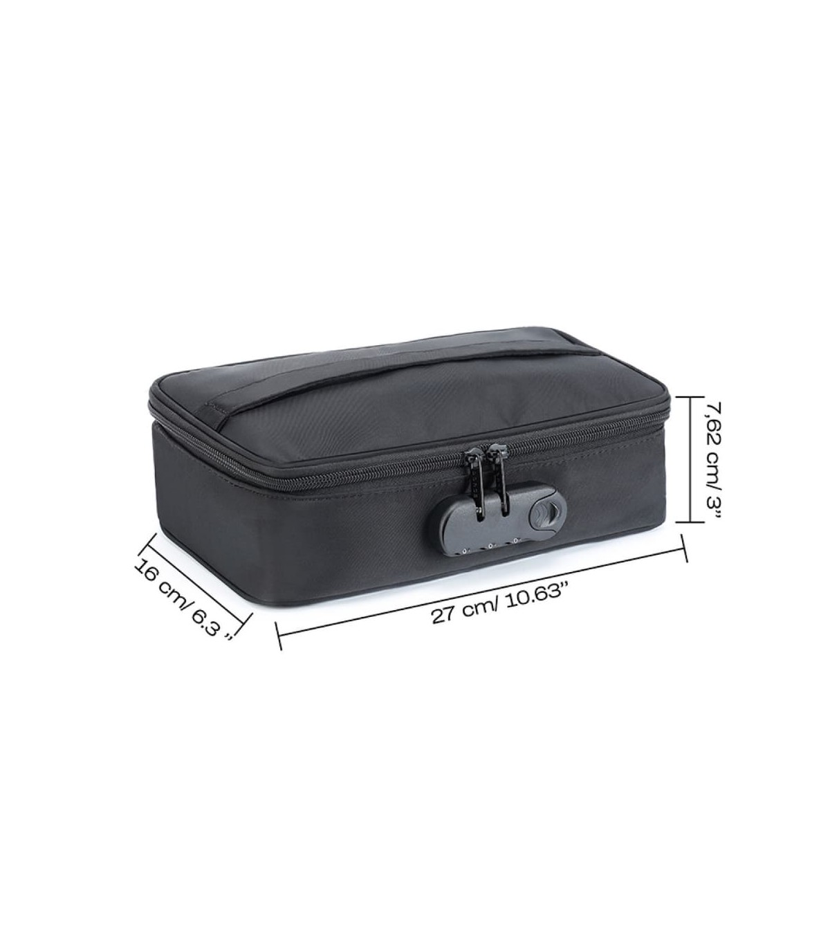 Une pochette avec anse conçue pour le transport et le rangement sécurisé de sextoys. Dimensions 27 × 16 × 7,62 cm.