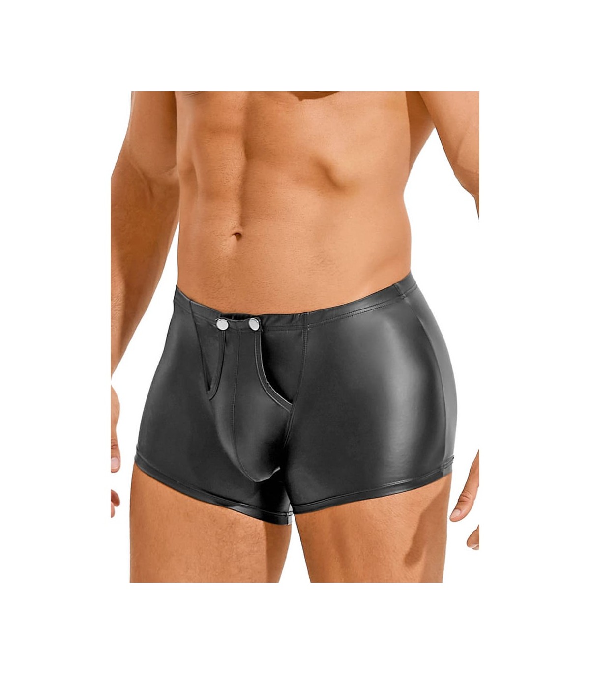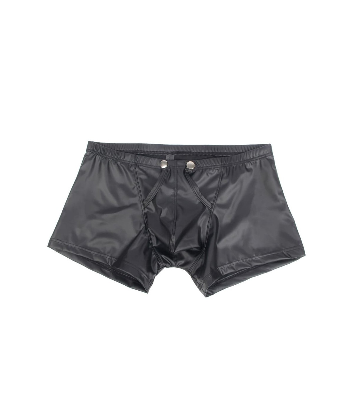Ose le look ultra-coquin avec ce boxer noir effet cuir brillant. Sa coupe ajustée épouse parfaitement tes formes et met en valeur ta silhouette pour un style sexy et provocant.