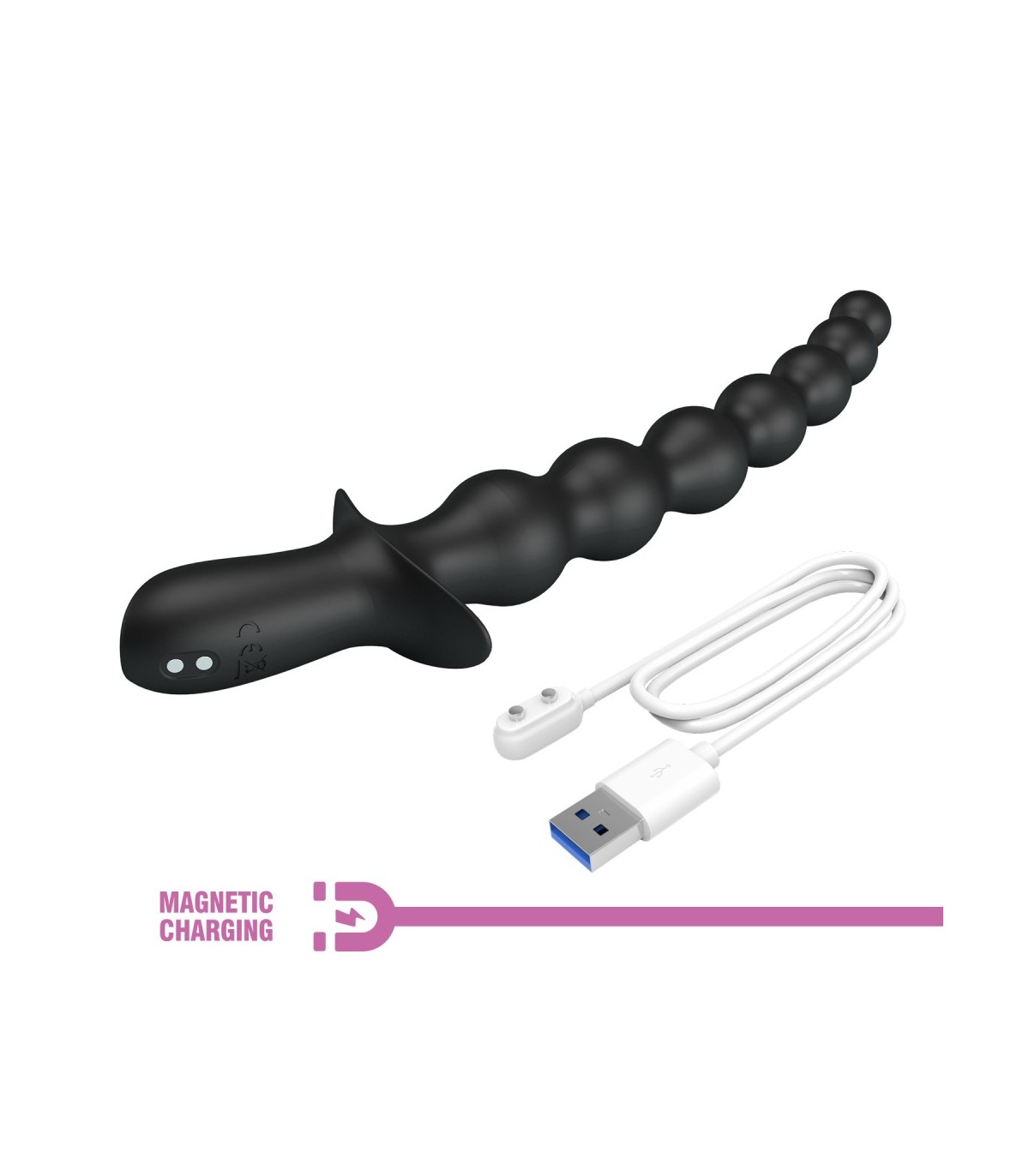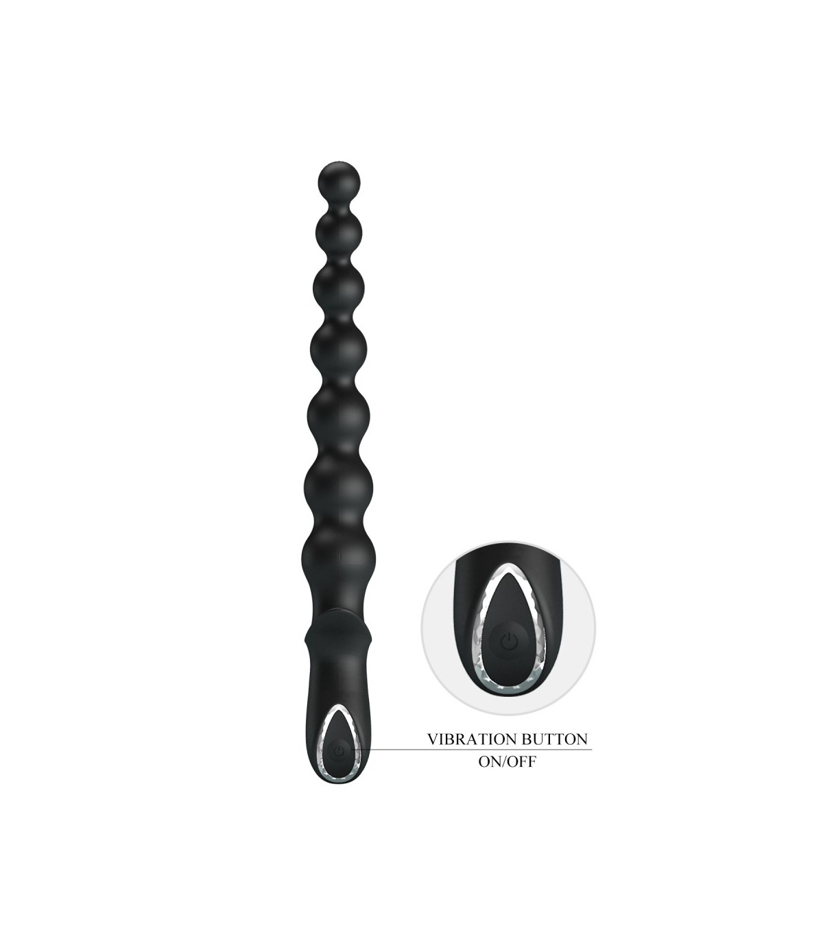 Chapelet anal en silicone avec 10 modes de vibration. Largeur progressive de 1,8 à 3,2cm. Rechargeable USB.