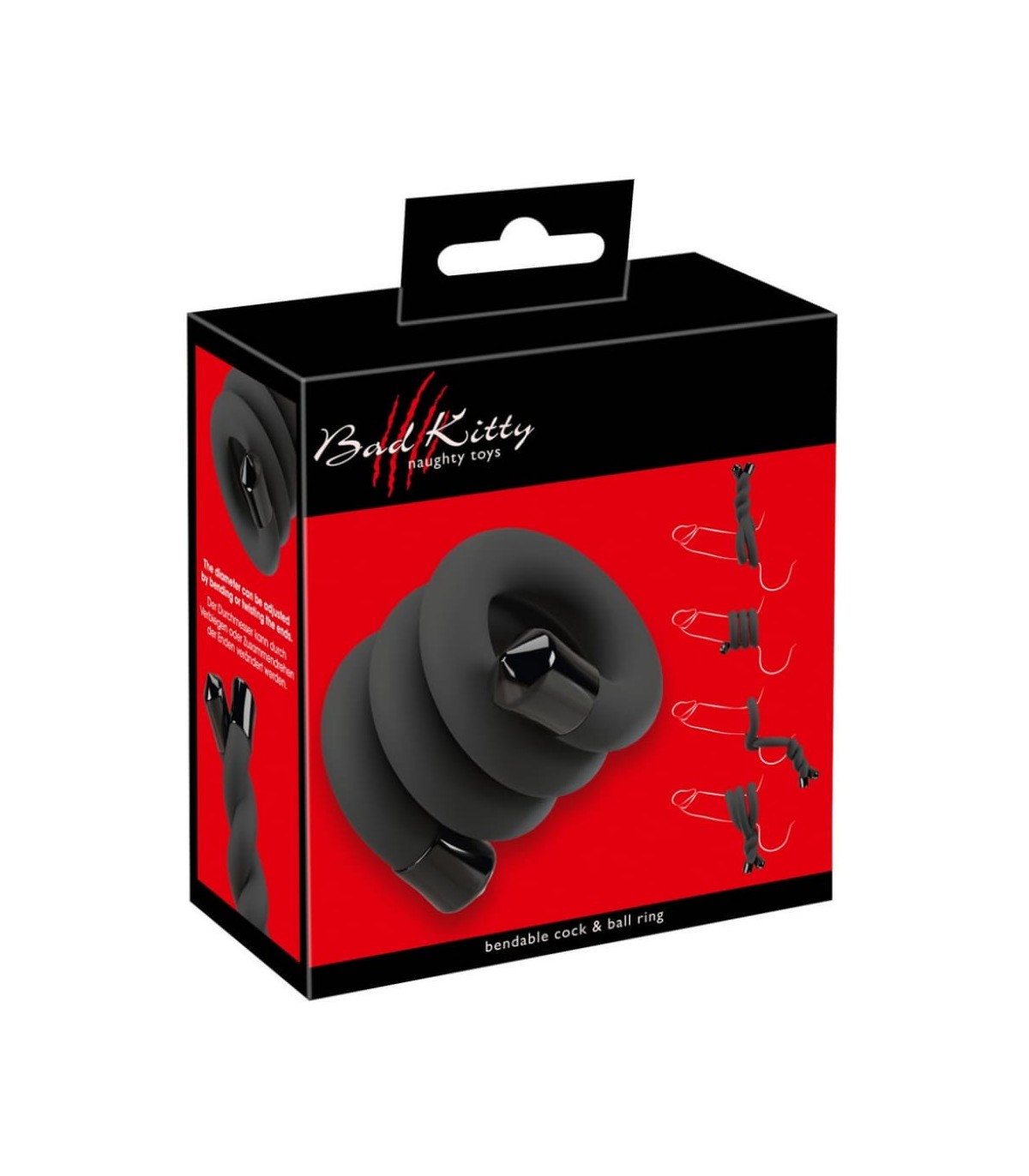 L'anneau pénien et testiculaire flexible de la marque Bad Kitty est un dispositif personnalisable qui s'ajuste autour du pénis et/ou des testicules. Il offre une multitude de possibilités de port dans le but de renforcer ton érection et d'intensifier tes sensations.