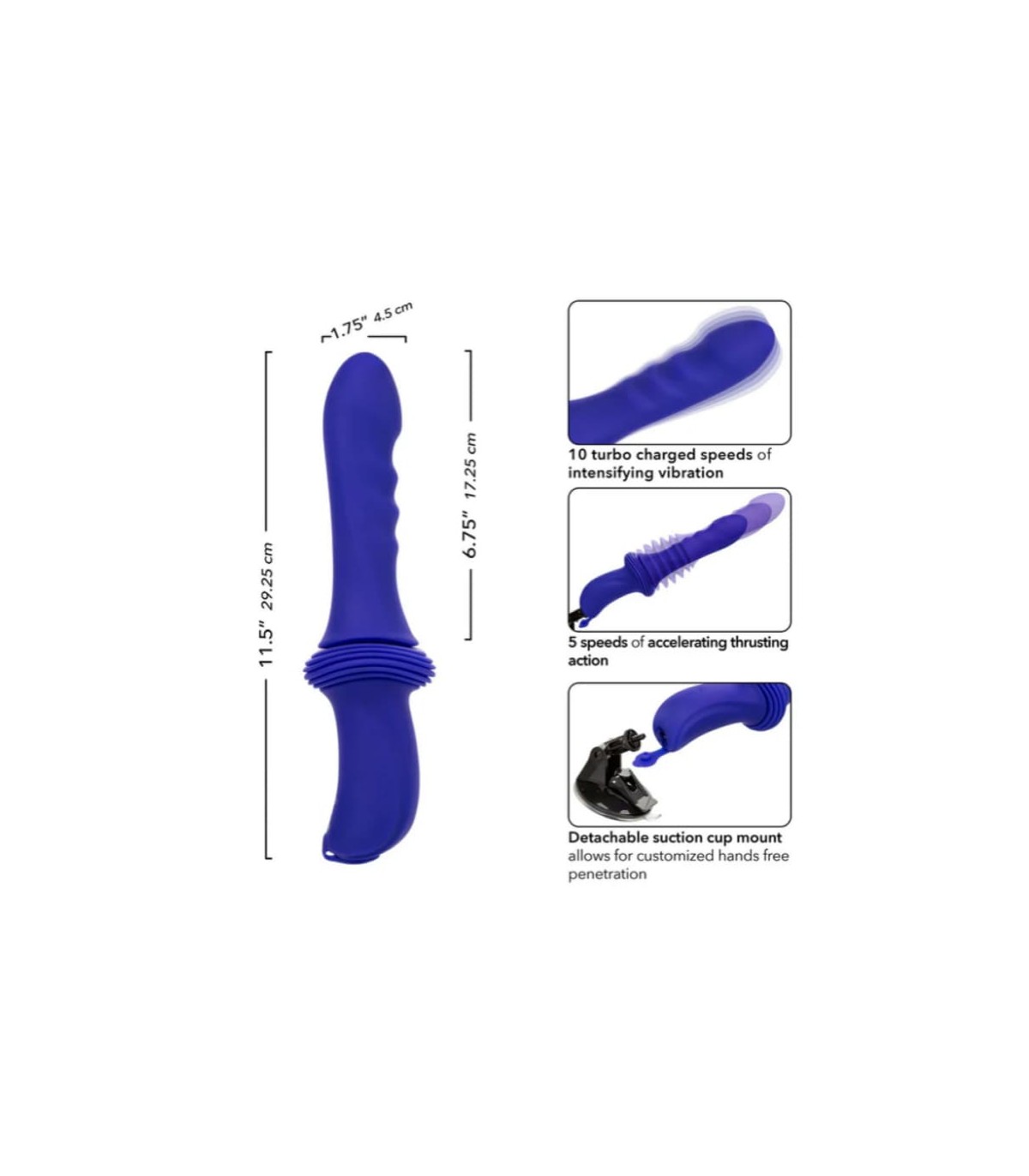 Sa tige nervurée glisse et pénètre avec intensité, pendant que le moteur interne délivre 10 vitesses de vibration et 5 niveaux de va-et-vient ultra rapides. Tu peux moduler chaque mouvement pour une expérience personnalisée — douce et progressive ou brutale et frénétique, selon ton humeur du moment.