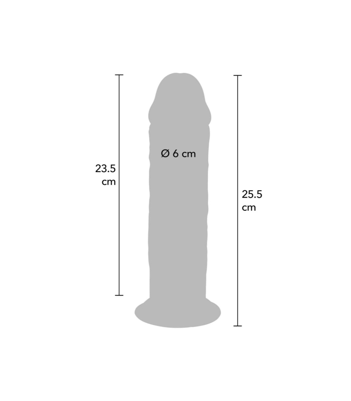 Gode réaliste avec texture veiné et gland décalotté rosé. Diamètre généreux de 6cm pour 23cm de longueur insérable. En PVC chair.