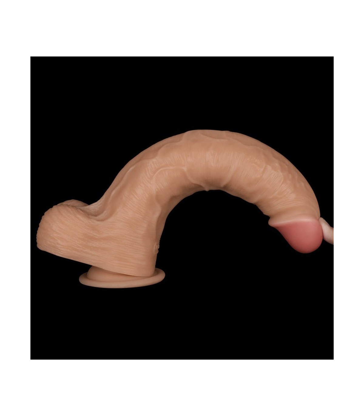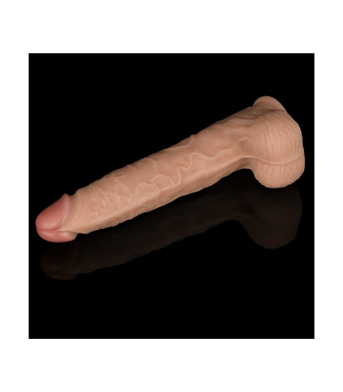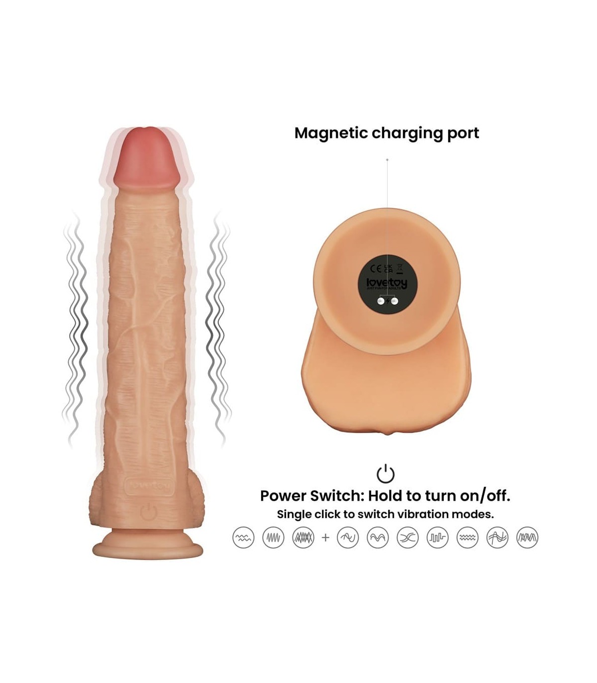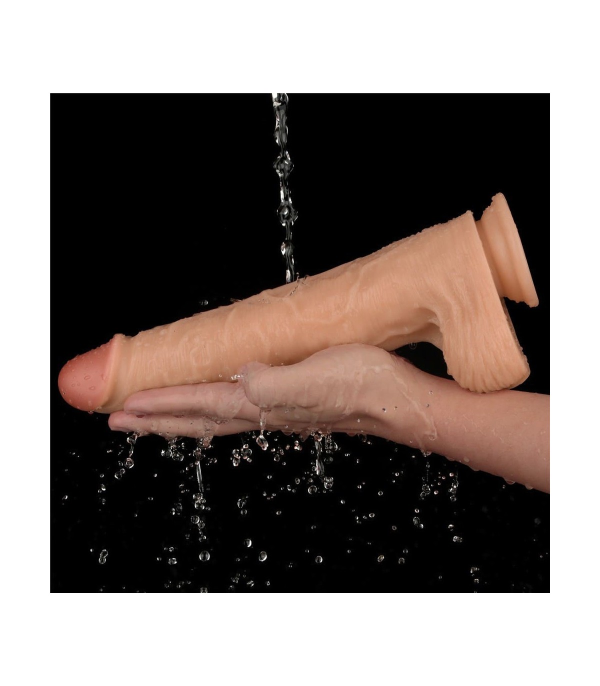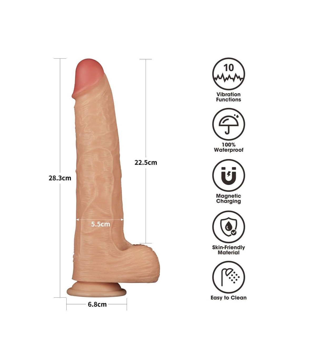 Gode réaliste avec 10 modes de vibrations. Longueur insérable de 23cm et largeur de 5cm environ. En TPE chair flexible. Avec ventouse.