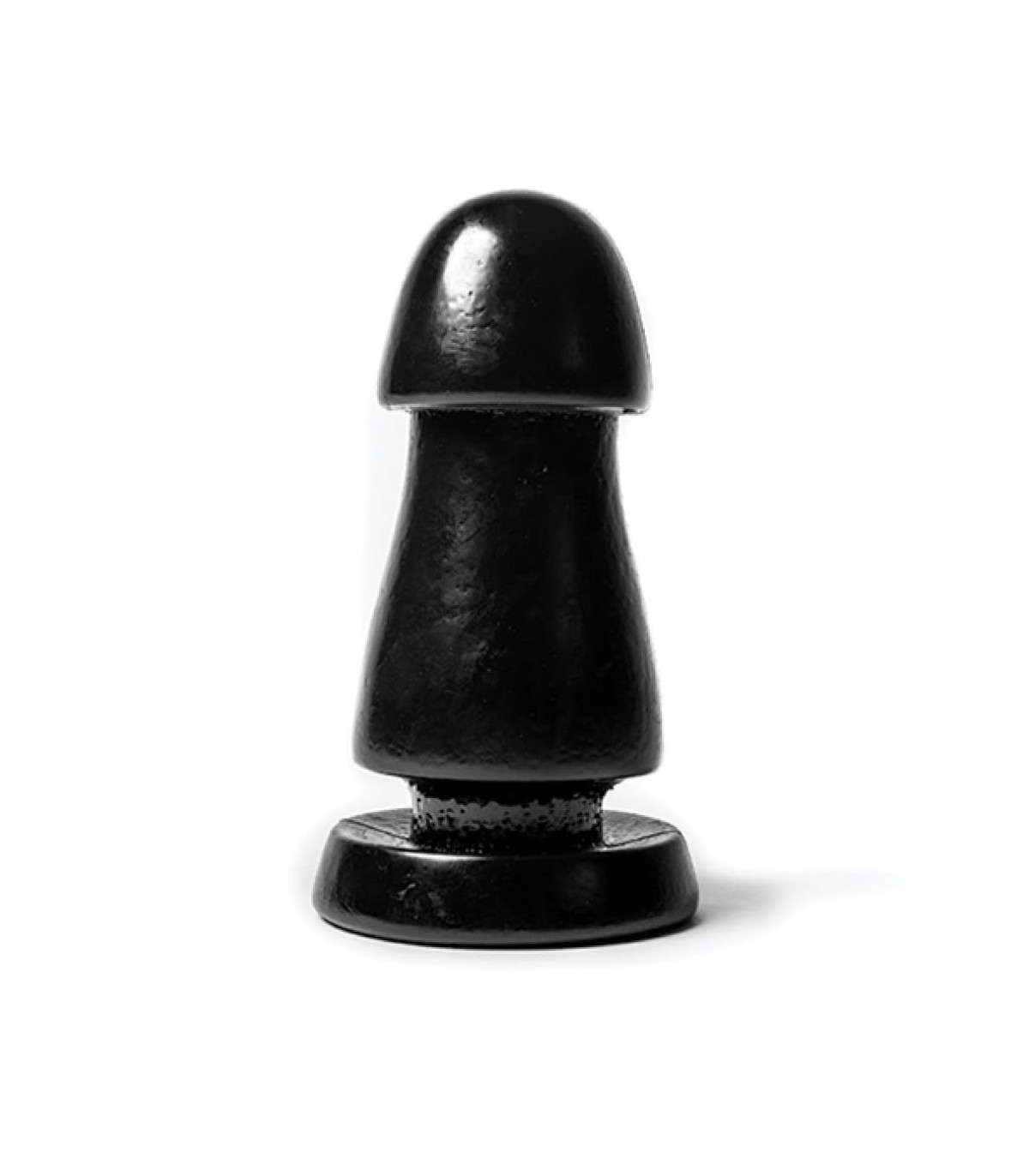Enorme plug anal pour une dilatation extrême. Largeur maximale de 8cm (gland) puis 9,5cm jusqu'à avant le col de 6cm. En PVC noir souple.