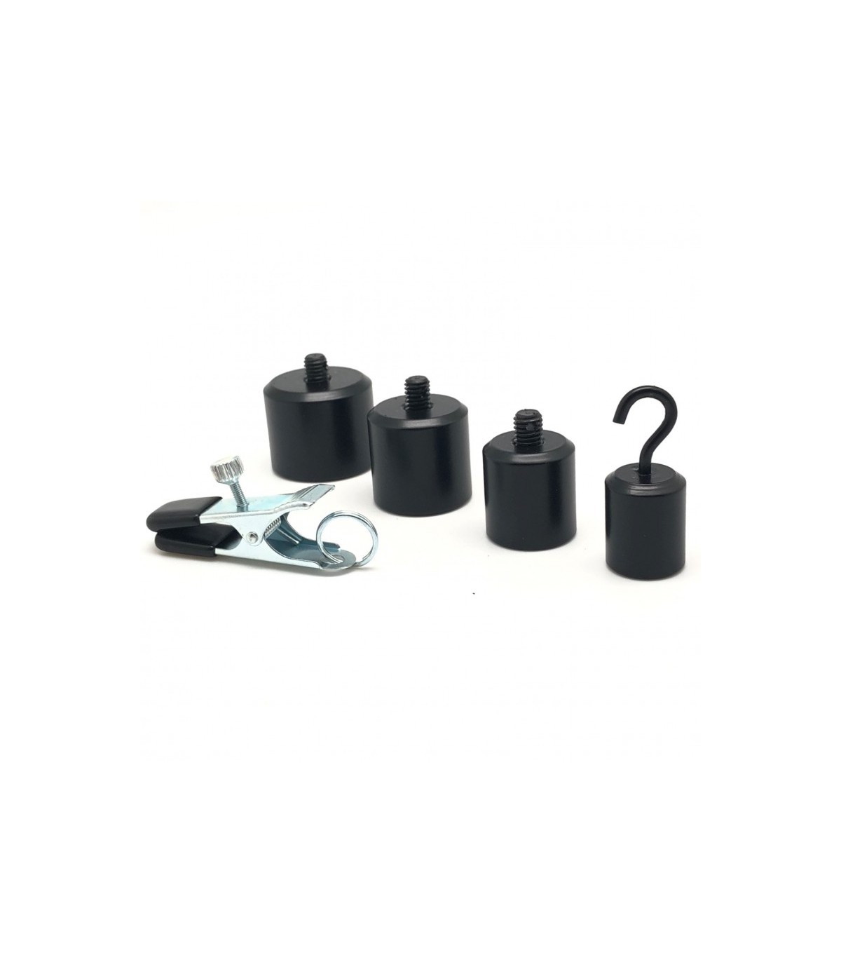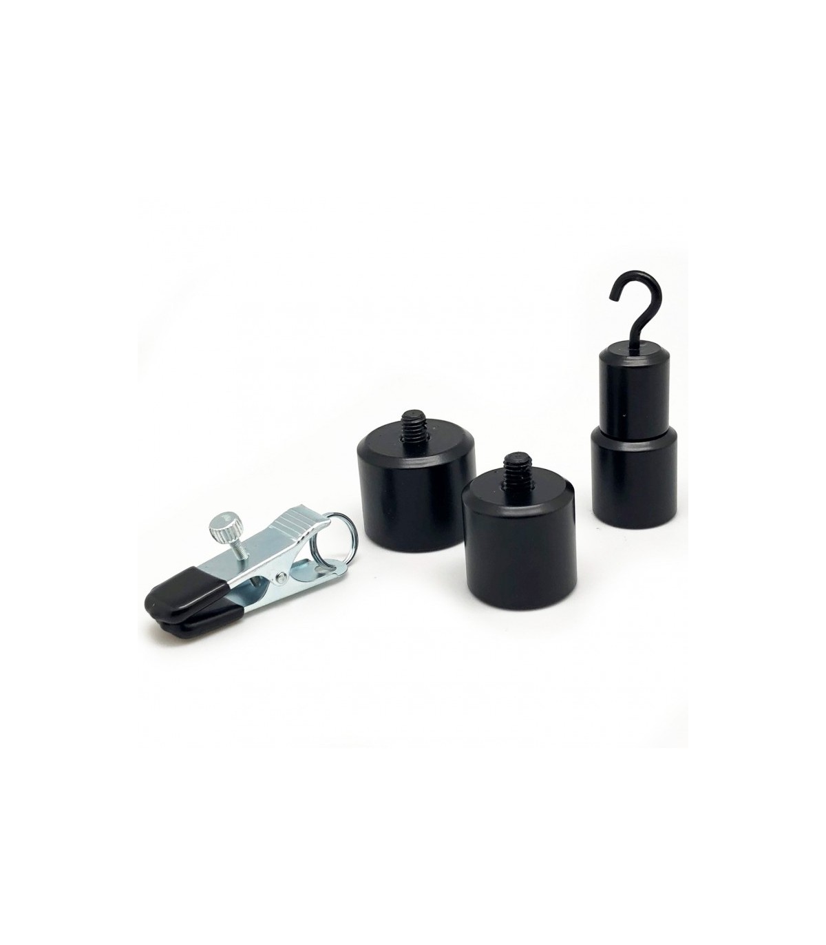 Le poids maximum de 520 g peut être ajusté facilement grâce aux différentes suspensions disponibles dans le kit : 60 g, 100 g, 160 g et 200 g. Les poids s’attachent aussi bien aux tétons via la pince qu’à un ballstretcher via le crochet inclus, offrant ainsi des sensations nouvelles et excitantes.