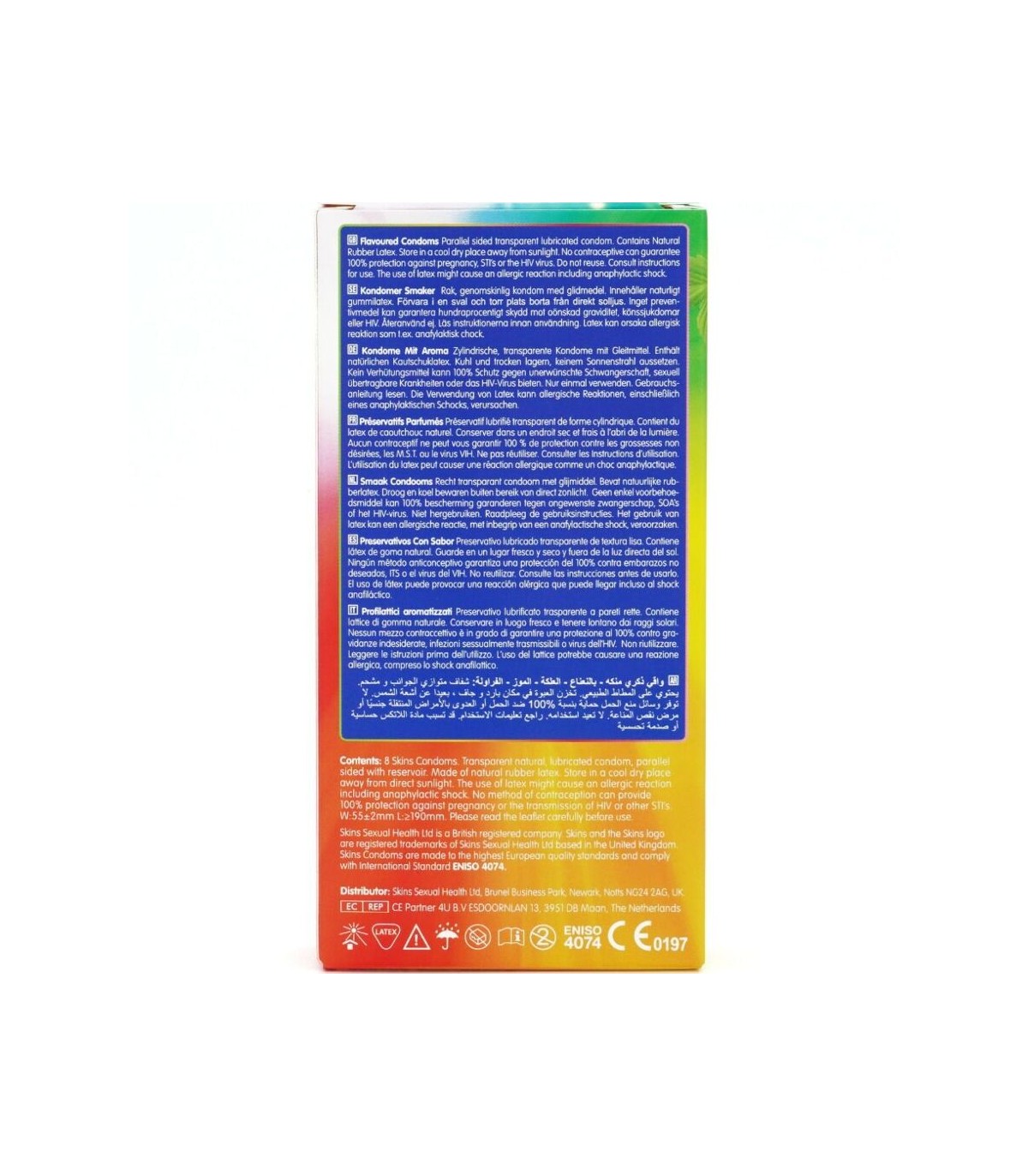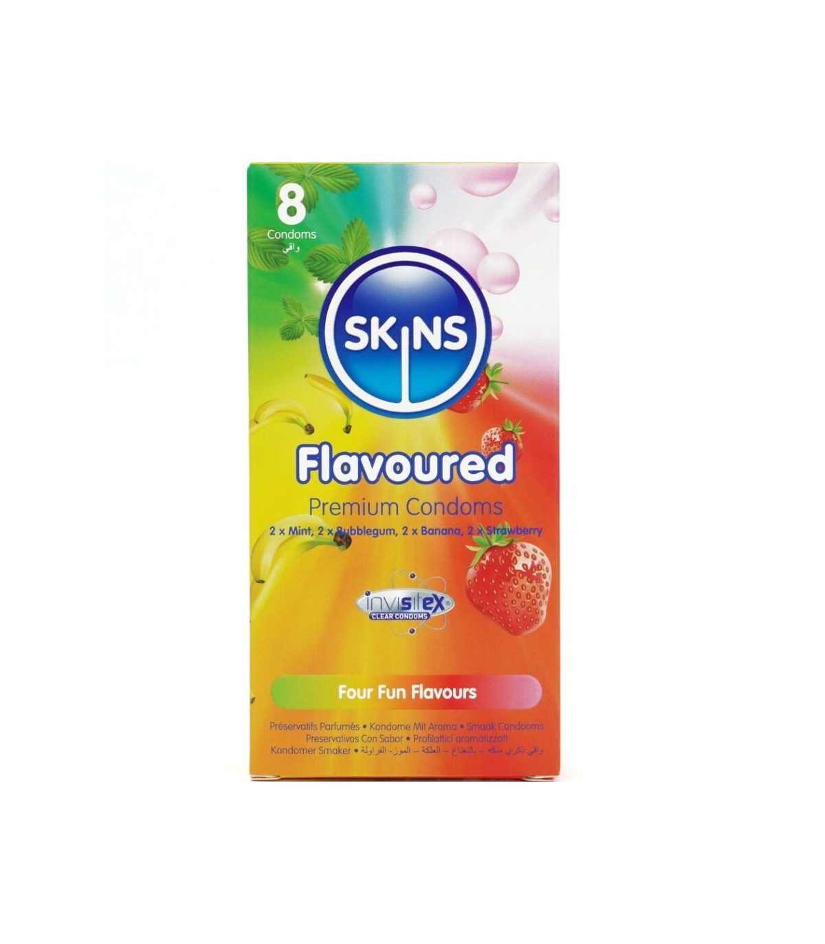 Découvre le pack Skins Flavor : 8 préservatifs ultra-sensuels qui mettent du fun et du goût dans tes moments intimes. Idéal pour une fellation gourmande en toute sécurité !!