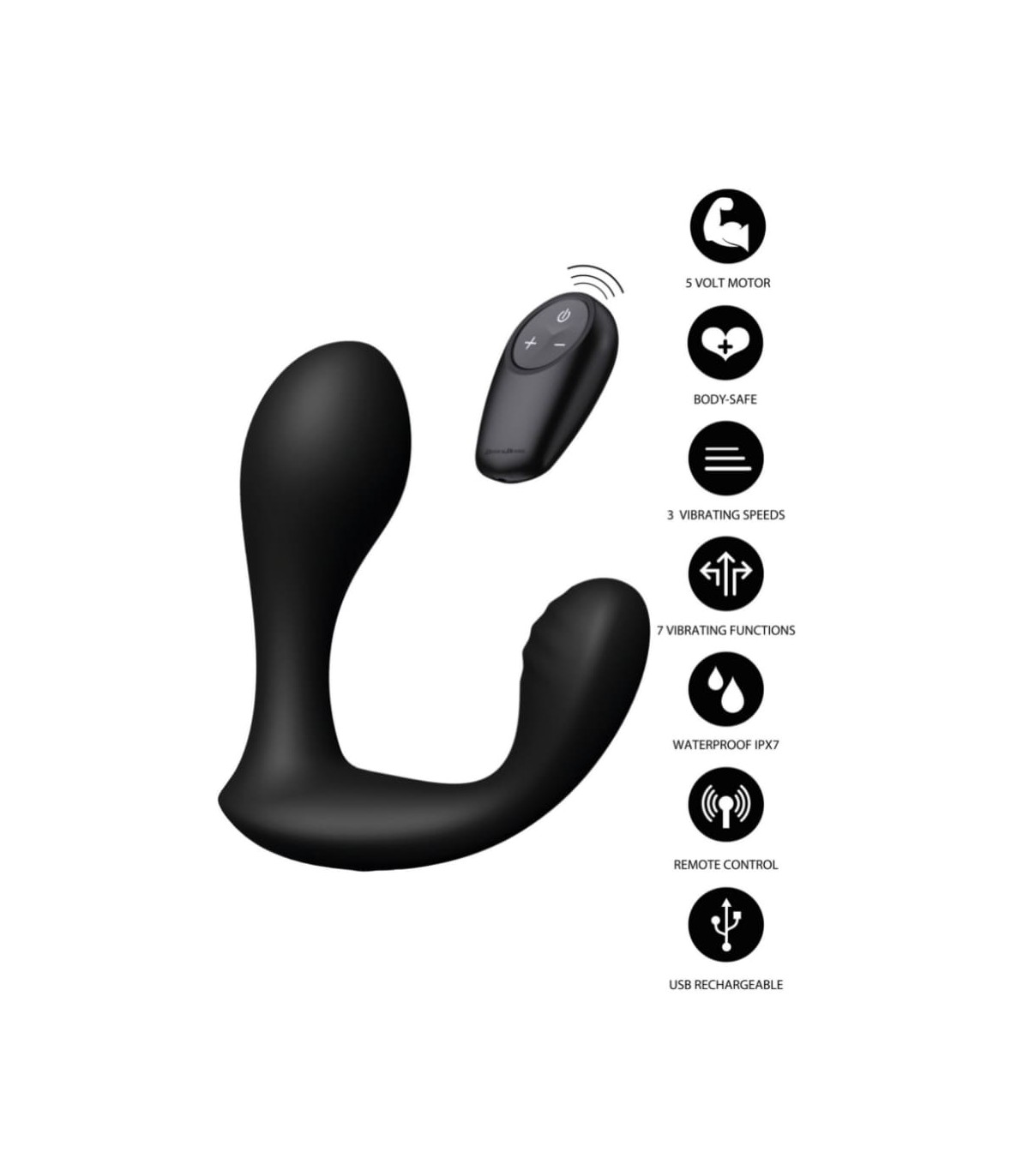 Stimulateur prostate en silicone. Avec télécommande sans fil et 10 modes de vibration pour une stimulation intense et personnalisée. Rechargeable USB.