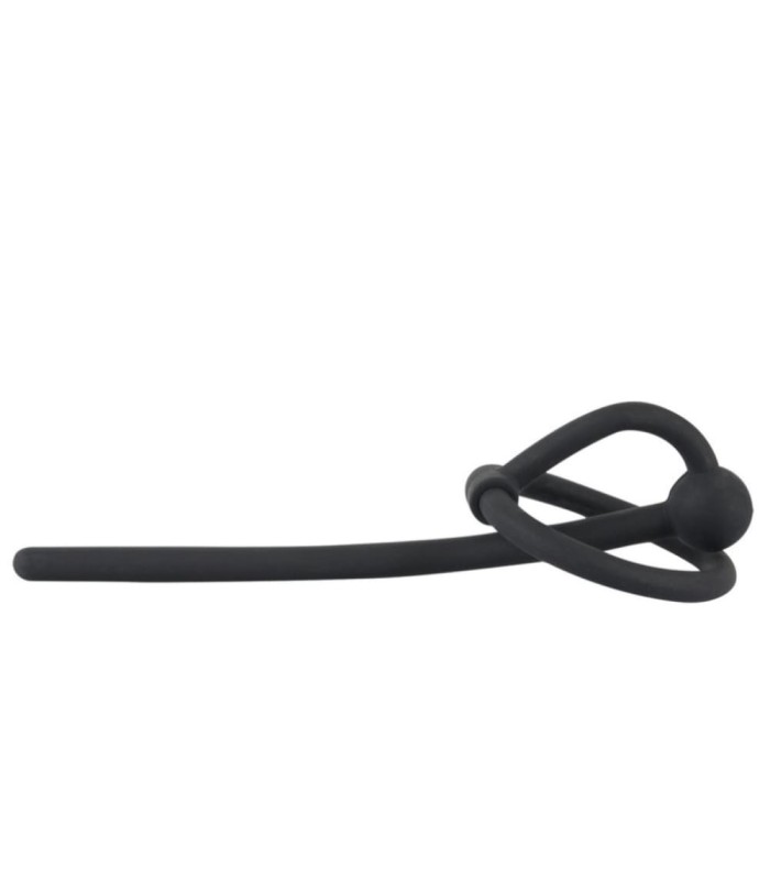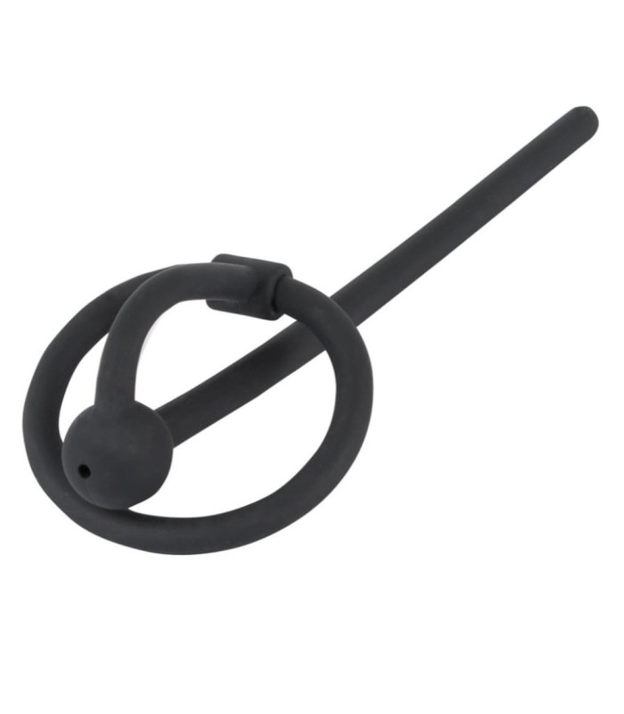 Plug pénis percé et anneau de gland en silicone flexible. Diamètre 6mm. Insérable 10,7cm.