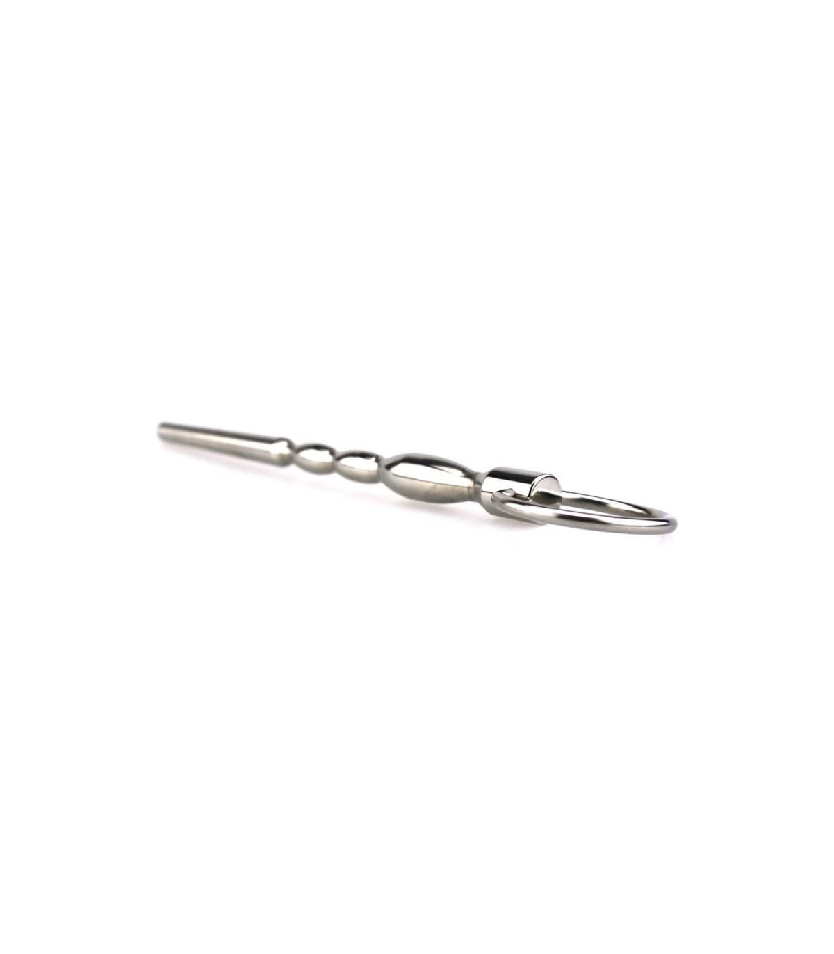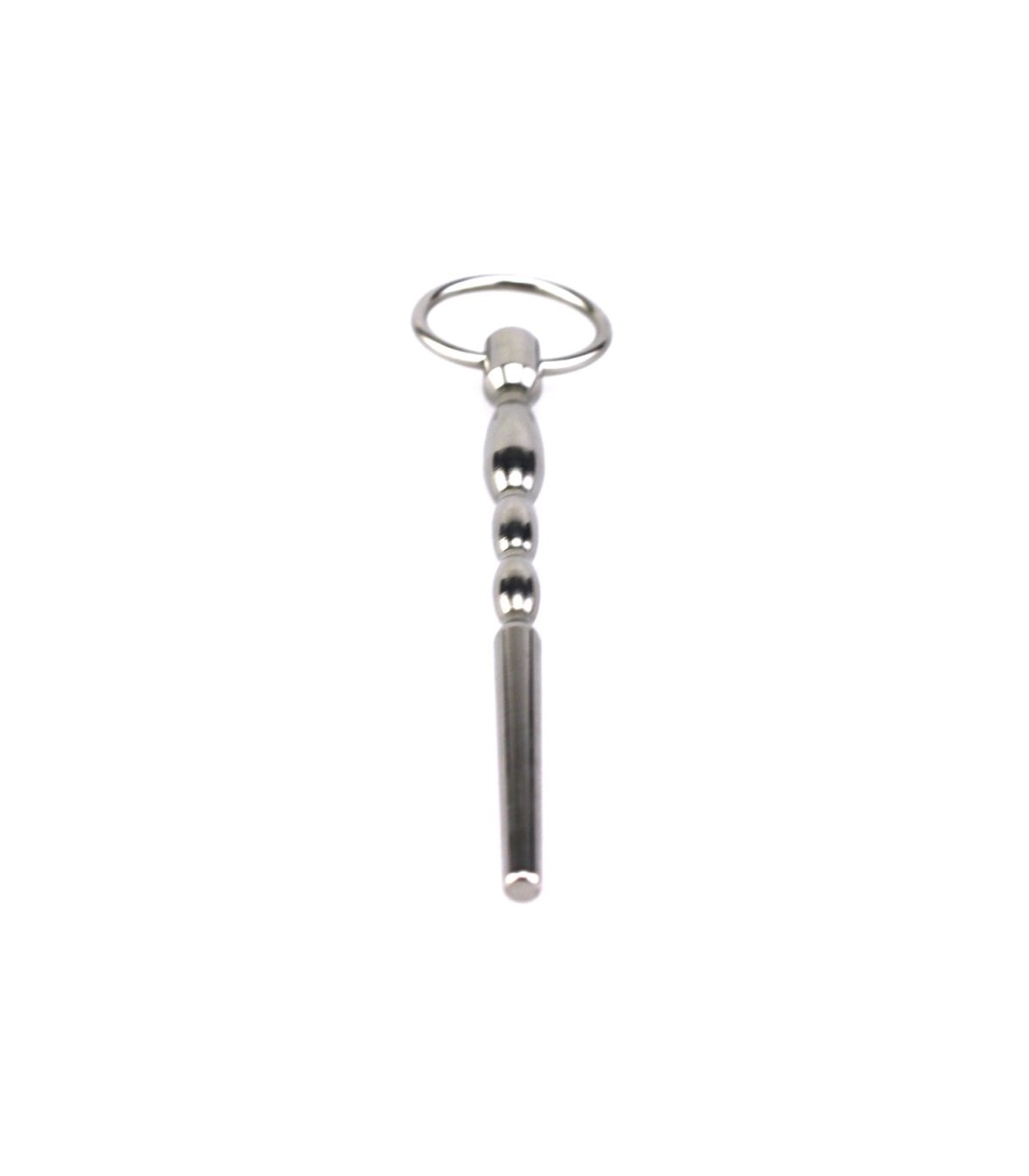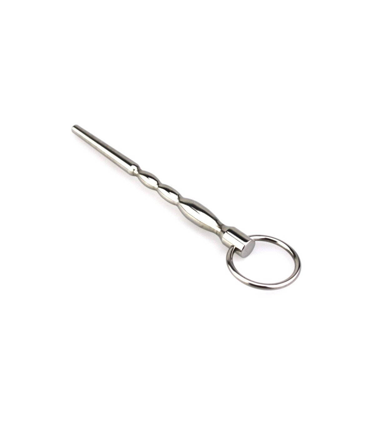 Tige urètre en métal ondulé de 9,5cm de longueur insérable avec un diamètre variable de 6 à 8mm. Avec anneau pour une utilisation pratique et sécurisée.